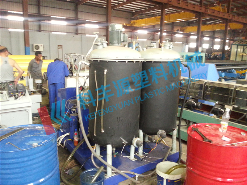 一步法保溫管設(shè)備主要用于大口徑PE保溫管的生產(chǎn)。一步法保溫管設(shè)備其主要應(yīng)用于供暖管道的外層,其中間層為聚氨酯發(fā)泡層,內(nèi)層為鋼管。一步法保溫管設(shè)備主要由擠出機(jī)、機(jī)頭、冷卻水槽、牽引機(jī)、切割機(jī)、卡管機(jī)、支架及點(diǎn)電氣控制部分等組成。